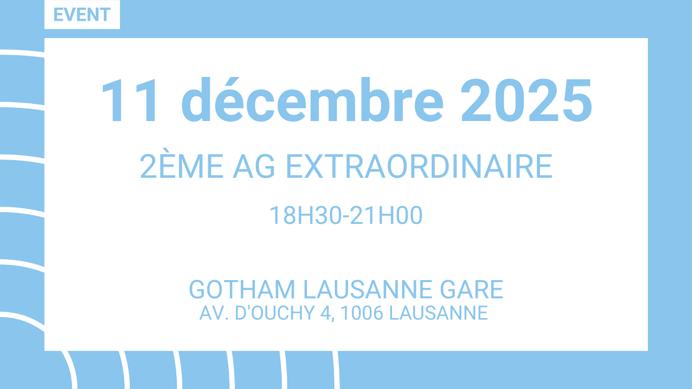 Cher.ère.s membres, Nous avons le plaisir de vous convier à la 2ème AG extraordinaire le 11 décembre prochain à 18h00 à Gotham, Lausanne gare. Nous vous accueillerons avec un verre de...