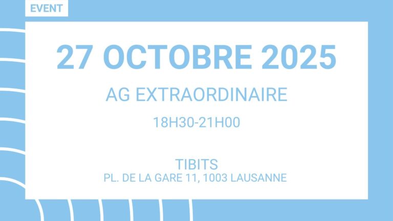 Cher.ère.s membres, Nous avons le plaisir de vous convier à notre AG extraordinaire le 27 octobre prochain à 18h00 au Tibits, Lausanne. Nous vous accueillerons avec […]